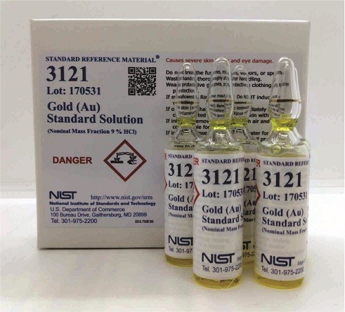 SRM 3119a 镓 (Ga) 标准溶液旨在用作镓定量测定的主要校准标准。 SRM 3119a 的一个单元由五个 10 mL 密封的硼硅酸盐玻璃安瓿组成,这些安瓿是通过重量法制备的含有已知质量分数的镓的酸化水溶液。该溶液含有约10%体积分数的硝酸,相当于约1.6mol/L的物质浓度(摩尔浓度)。